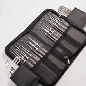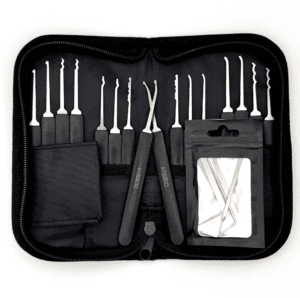 This premium 22-piece kit features both standard (0.024″/0.6mm) and slim (0.015″/0.4mm) picks, perfect for handling a wide range of cylinder locks.